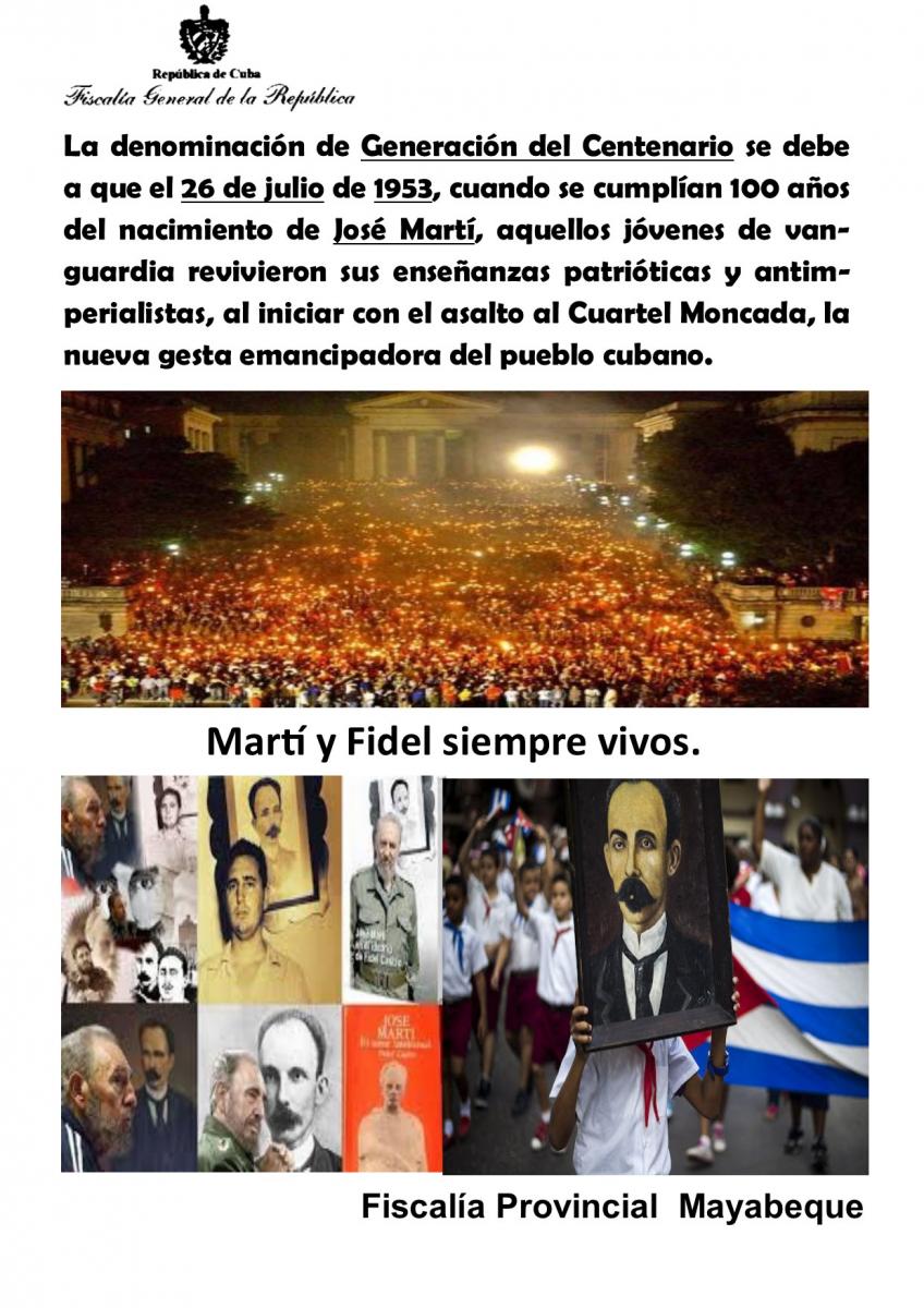 Compartimos información sobre la Generación del Centenario, el por qué de su nombre, sus própositos e ideales, precisamente esa generación de jóvenes que fue protagonista de uno de los hechos más importantes de nuestra historia, el asalto a los cuarteles Moncada y Carlos Manuel de Céspedes. Los mismos jóvenes que luego conformarían el Movimiento 26 de julio, en honor a esa gesta de la que se cumplen 67 años.